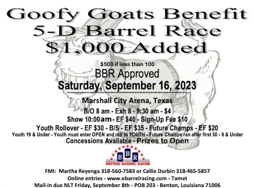 $500 Added Goofy Goat 5D Barrel Race Sept 14