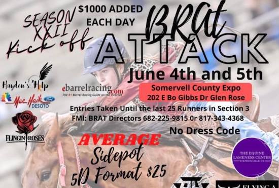 Season XXII Kick Off BRAT ATTACK June 4-5 Somervell Co Expo