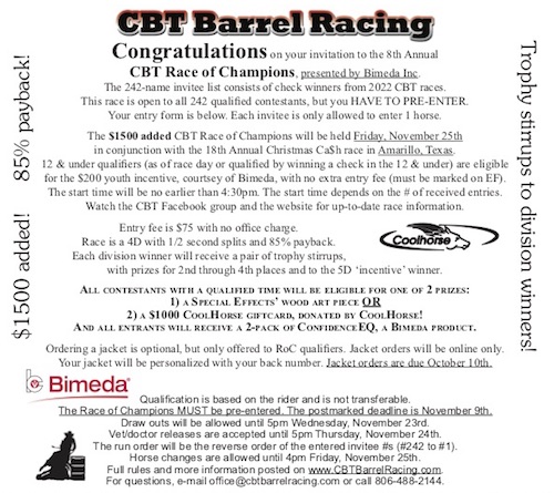 CBT Barrel Racing 13th Annual Double Dash Sept 17-18