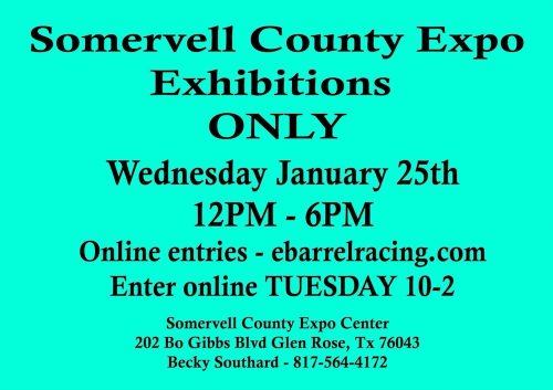 Posted on January 21, 2023February 2, 2023 by tametSomervell County Expo EXH ONLY Jan 25th All the Exh are sold out!!!!!